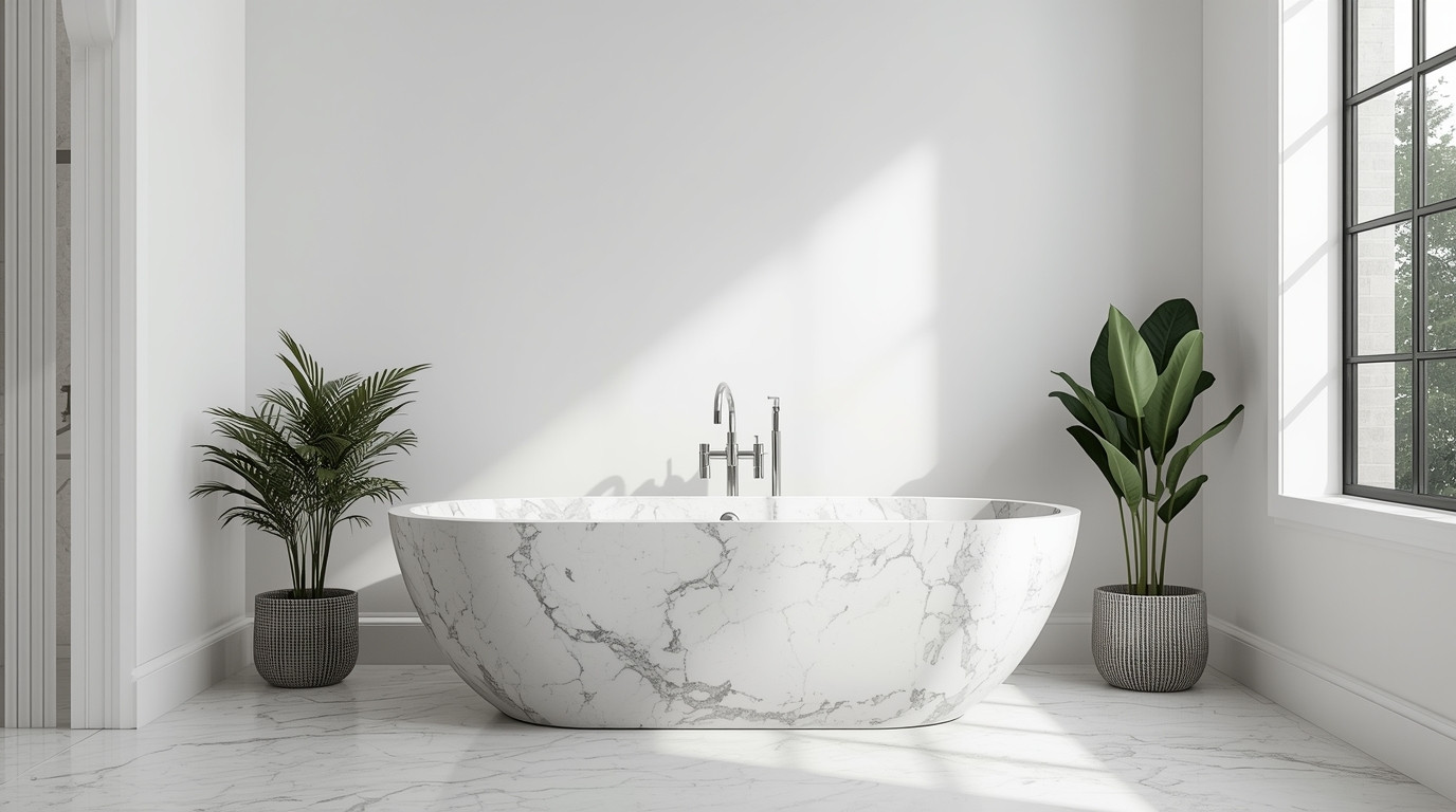 Bathtubs. Freestanding tubs sculpted from single blocks of marble, travertine, or granite. Ergonomic profiles, honed or polished finishes, sealed for easy maintenance.