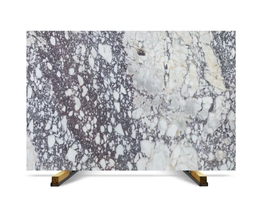 Afyon Violet Marble is a rare and luxurious Turkish marble known for its deep violet and burgundy veining on a creamy white background. Each slab is a dramatic composition of color, creating a sense of movement and elegance — ideal for standout interior features.