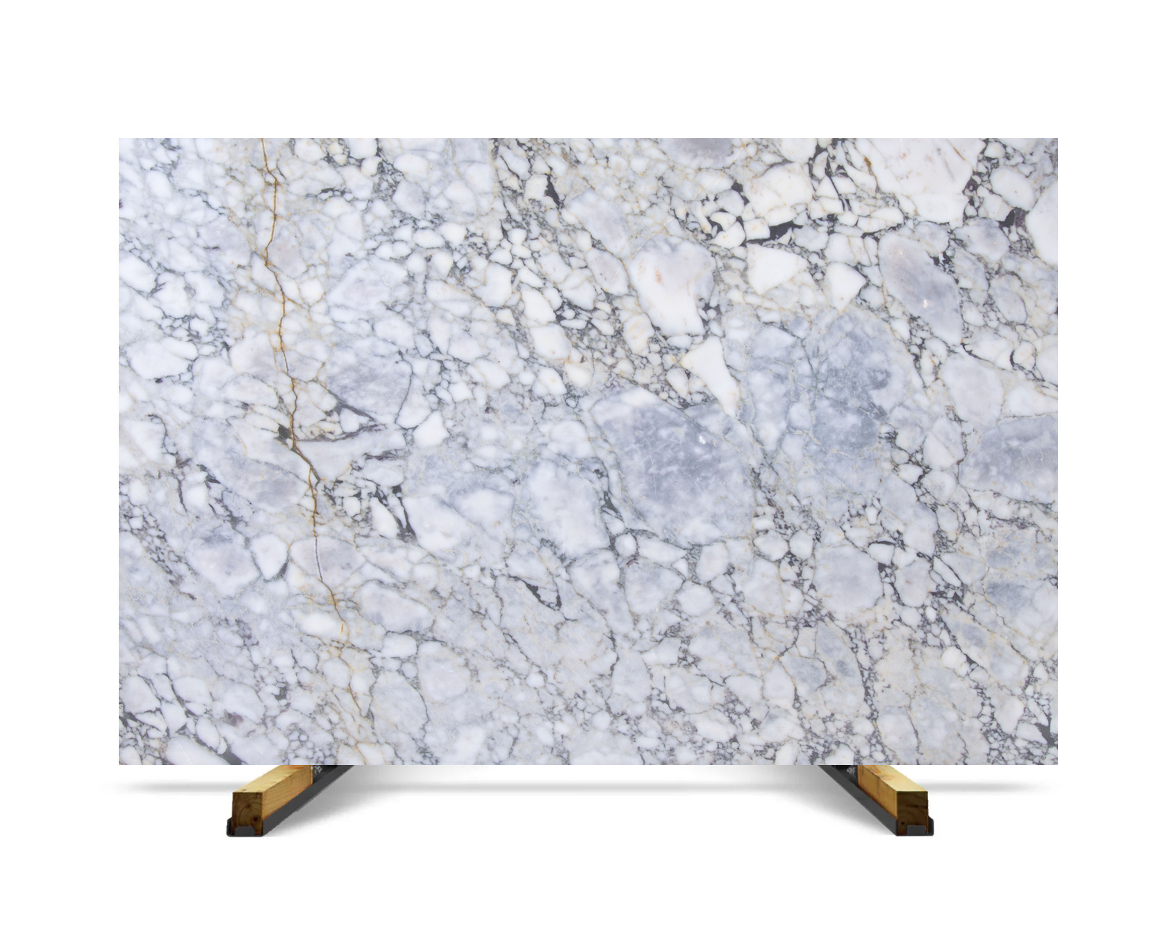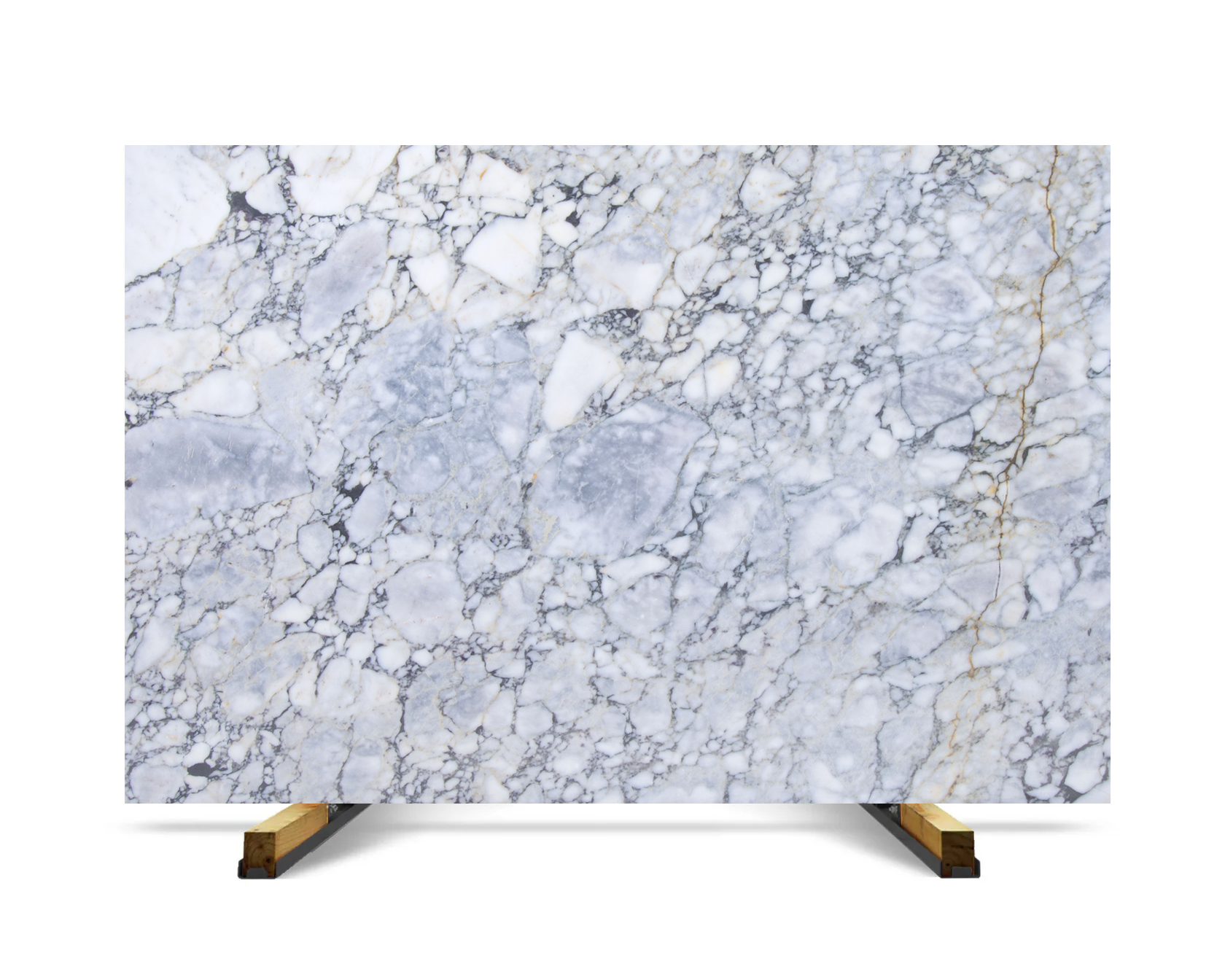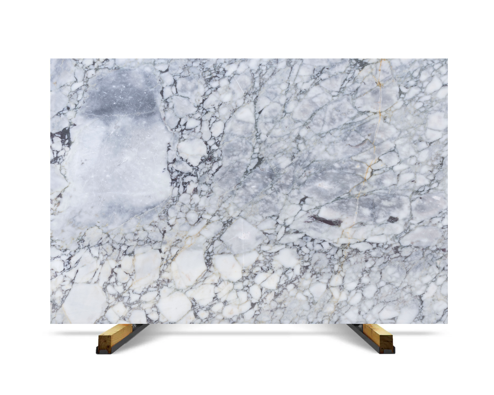 Argent Violetta is a sophisticated Turkish marble known for its refined grey-white background with bold violet and smoky veining. This natural interplay of cool and warm tones creates a dramatic yet harmonious visual — perfect for high-end interiors that demand character and individuality.