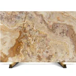 With its layered color palette — from warm golds to deep browns — Colorado Onyx transforms any space into a warm, inviting showcase. When backlit, its natural translucency emphasizes the unique patterns and depth, making it a favorite for statement walls, bars, and high-end hospitality projects.