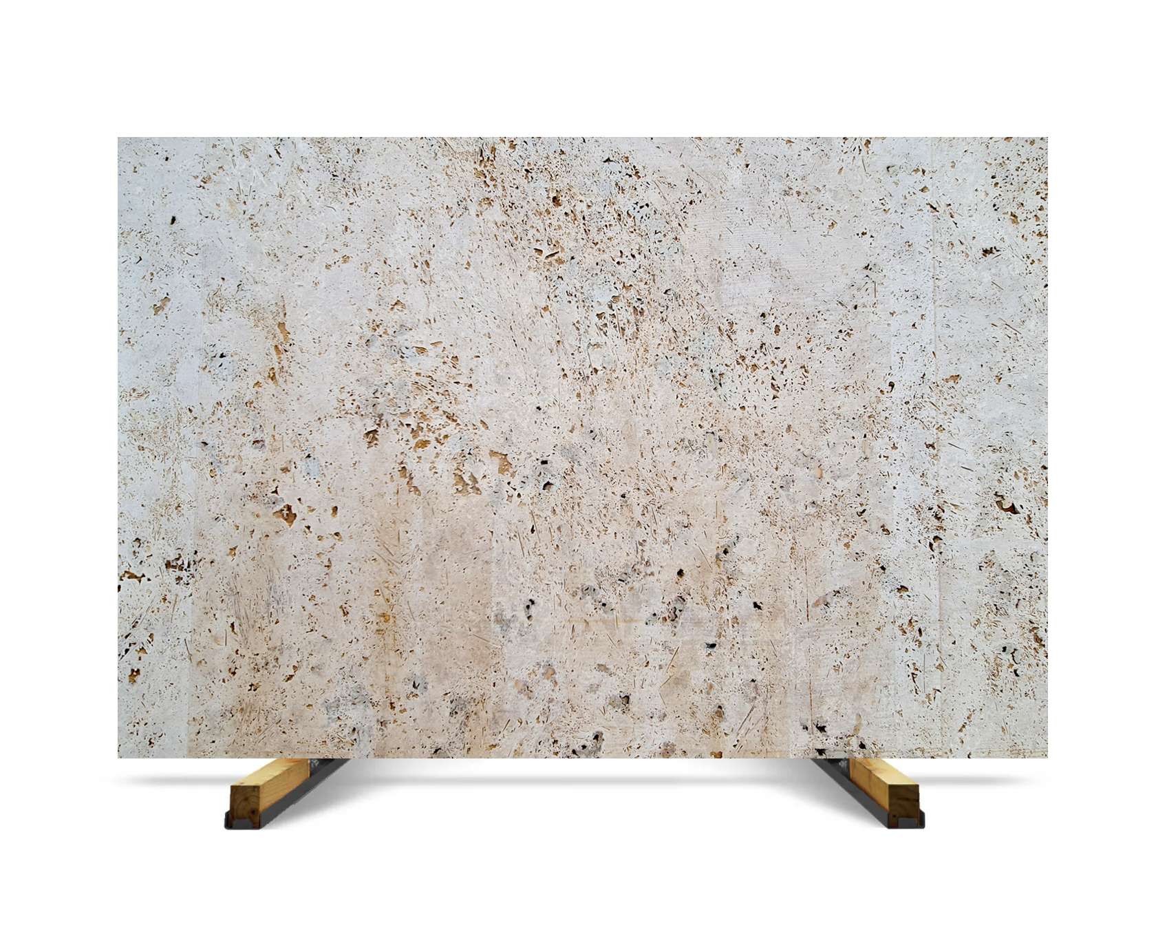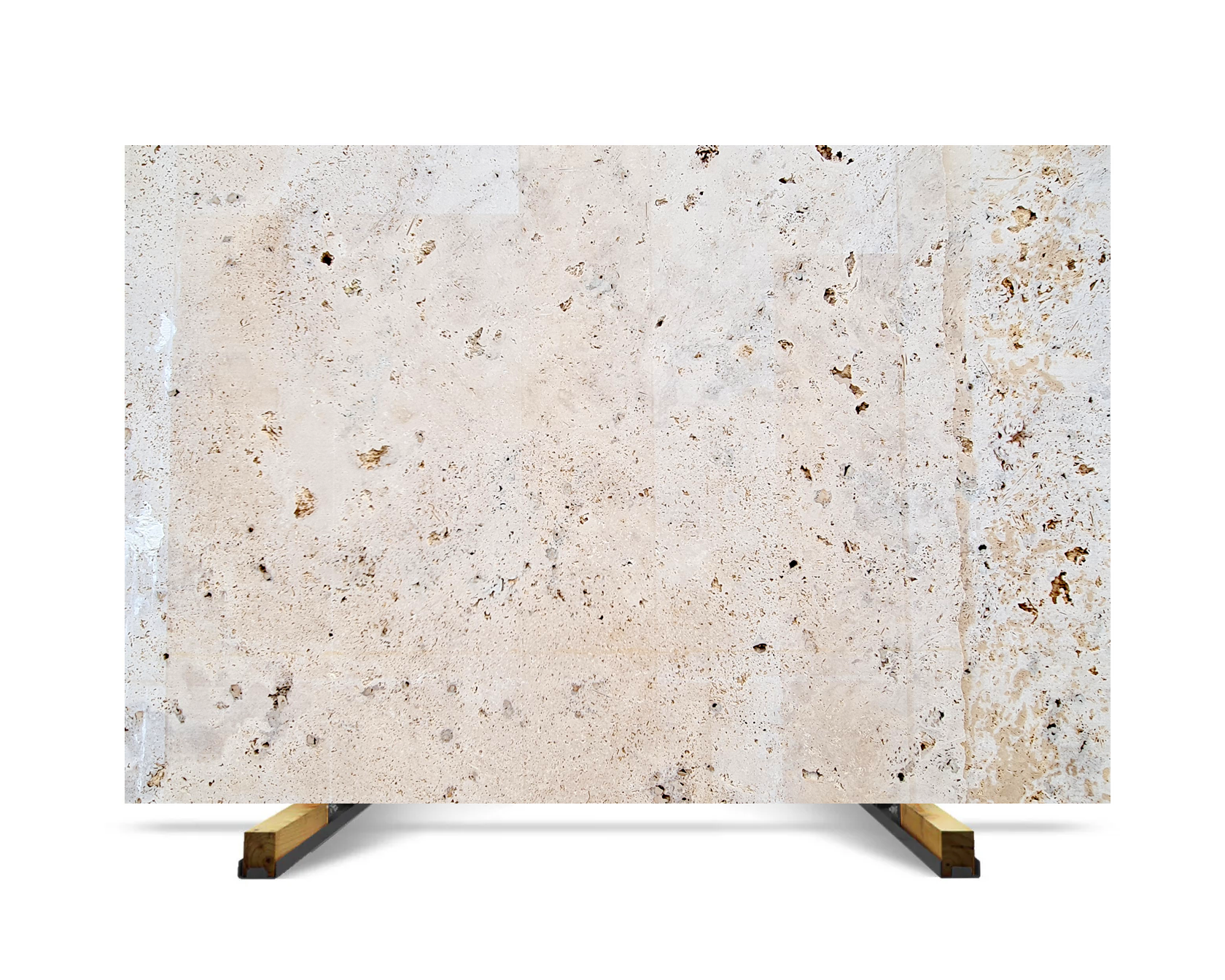 Compared to more uniform crosscut materials, this stone presents a more natural and expressive appearance, with visible voids and variation that add depth and authenticity.