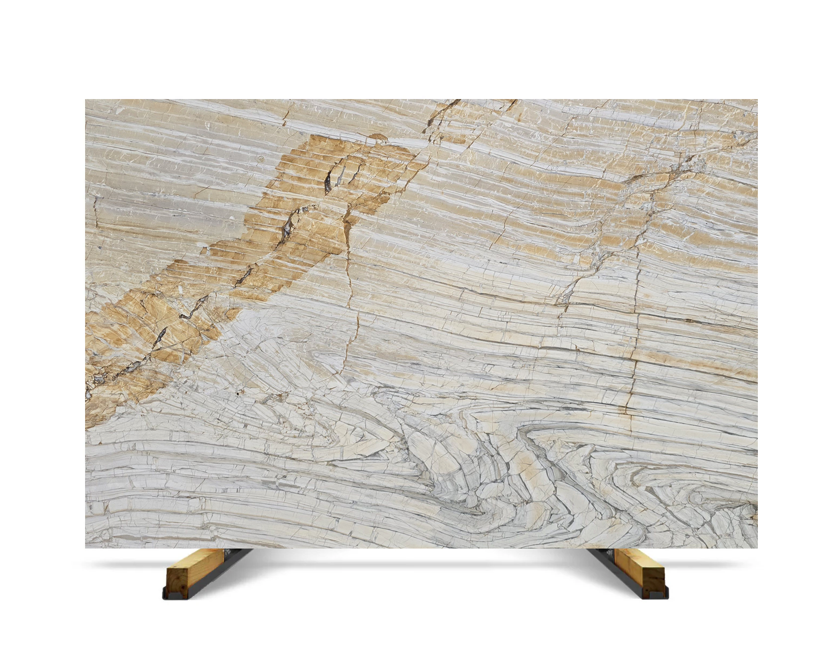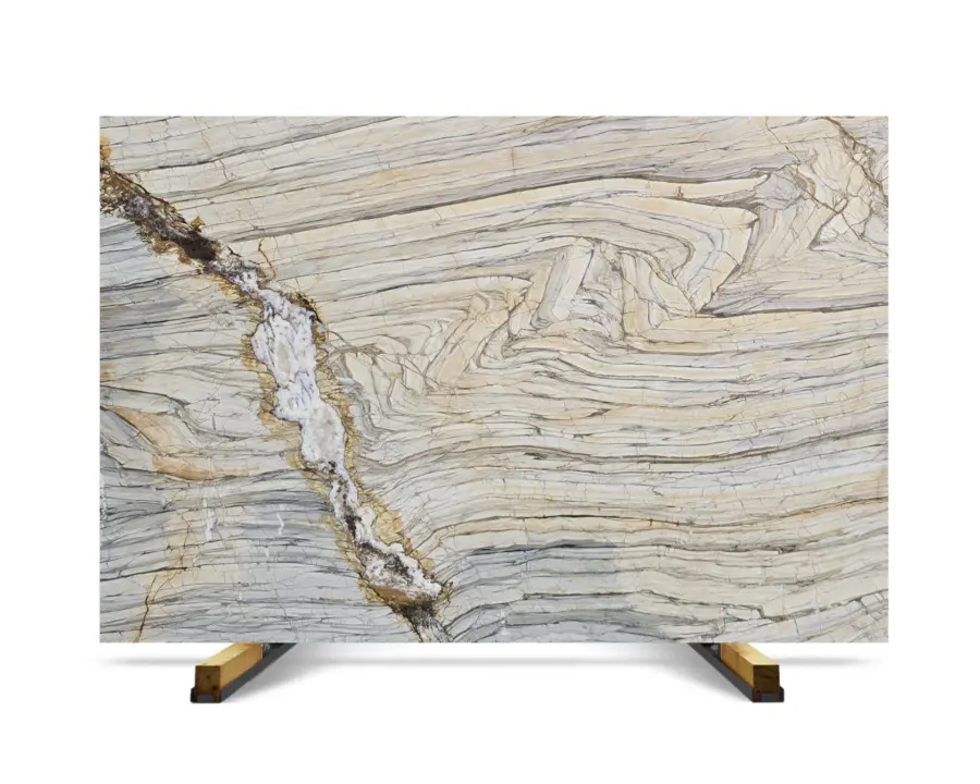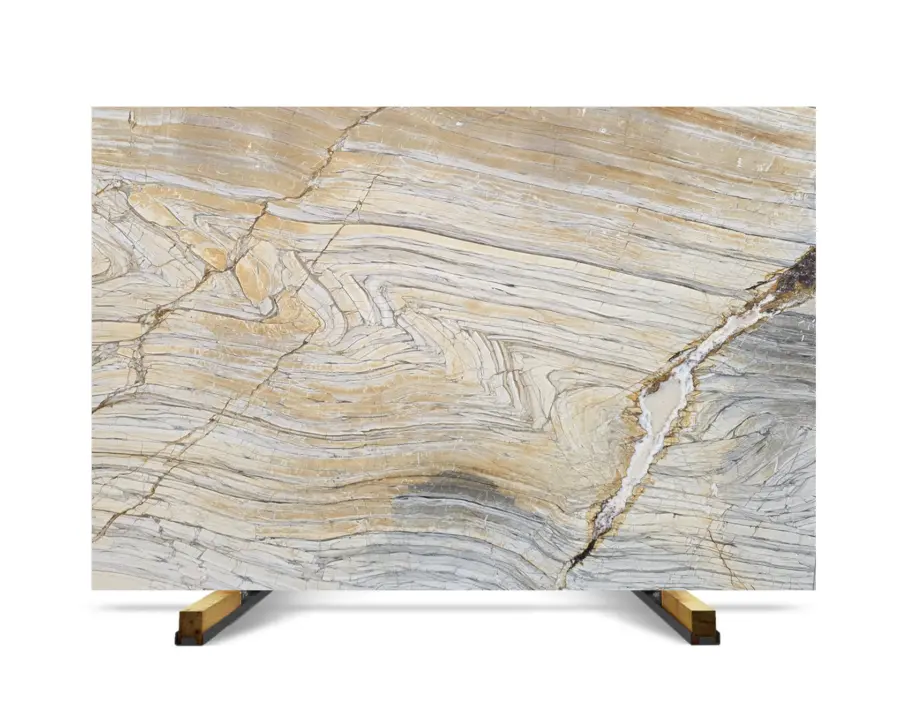 Diamond Beige marble slabs from Turkey are selected for projects that require a structured natural pattern and consistent supply across larger volumes. This material stands out for its pronounced linear movement, combining beige, light gray, and warm tonal variations into a layered, directional surface.