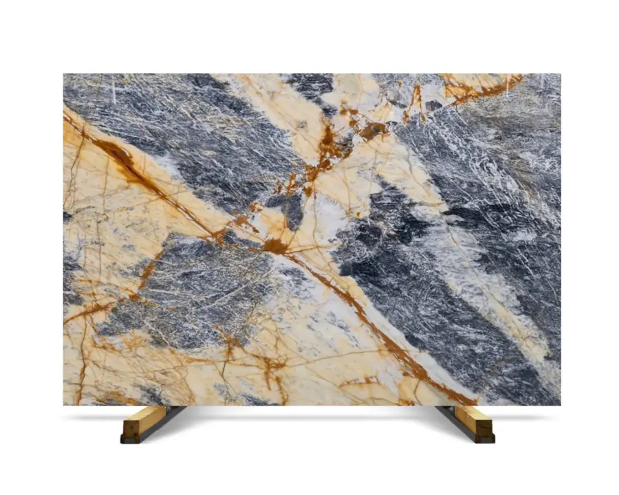 Explosion Blue marble stands out for its ability to combine cool tones with warm accents, allowing it to integrate into both modern and transitional interiors.