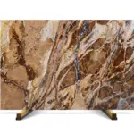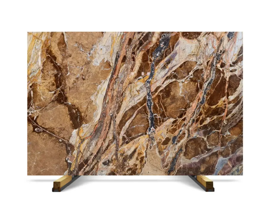 Fusion Gold marble from Turkey is supplied to the United States through container-based logistics and project-driven sourcing. This material features a flowing structure with rich brown, gold, and cream tones, creating a dynamic and high-impact natural stone surface.