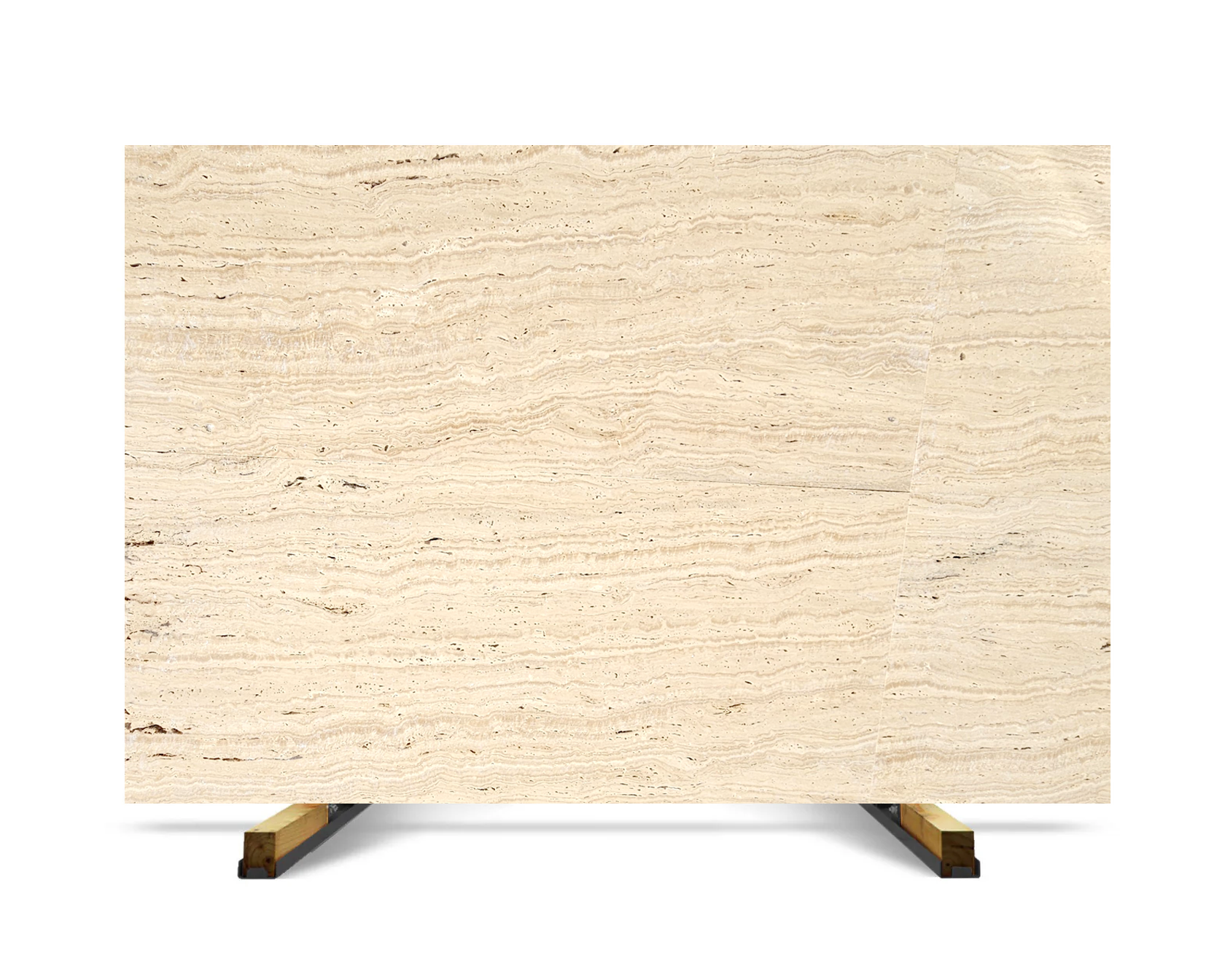 Irish Cream Travertine is characterized by its warm color range and gentle horizontal movement. The surface shows soft banding with moderate variation, giving the stone a natural and relaxed appearance.