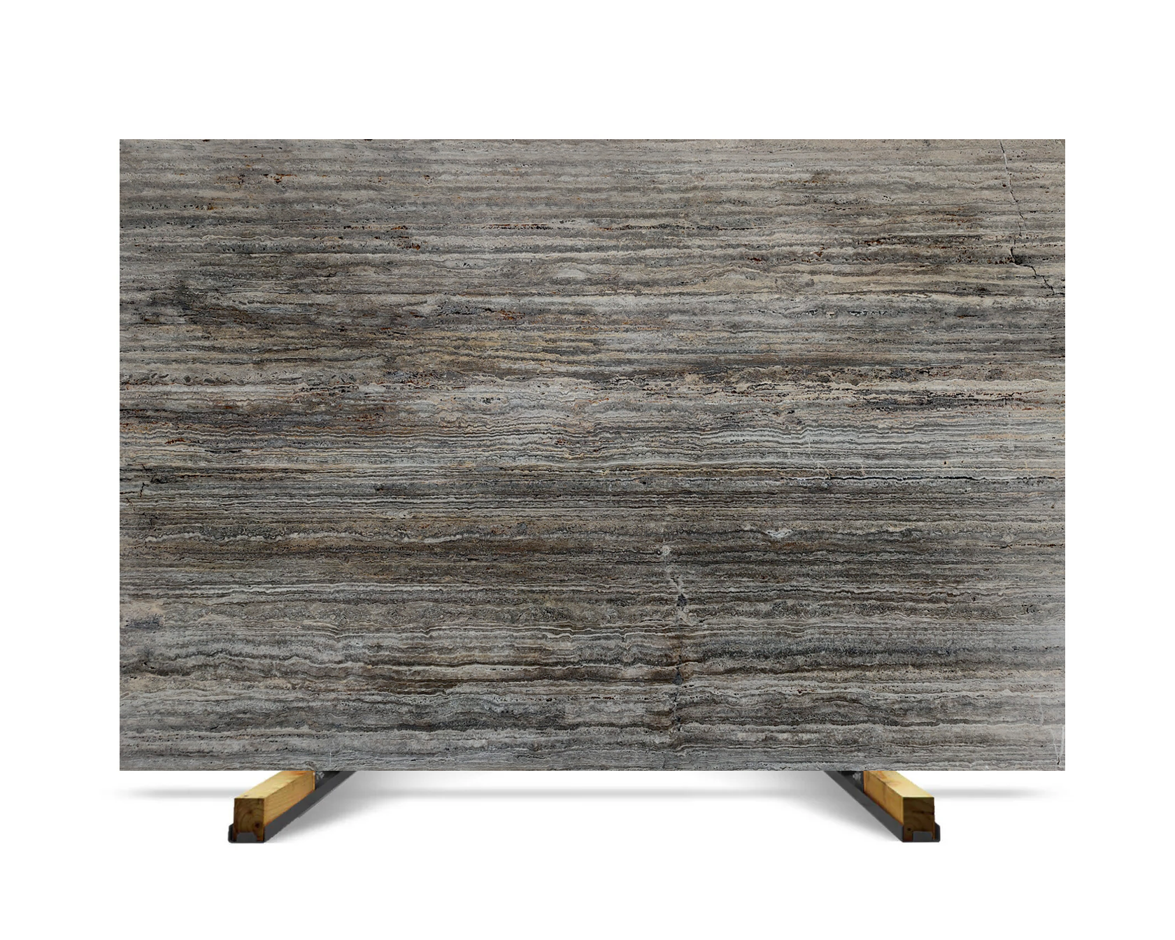 Titanium travertine slabs are sourced from Turkey and prepared for shipment to the U.S. based on container volumes or project-specific requirements.