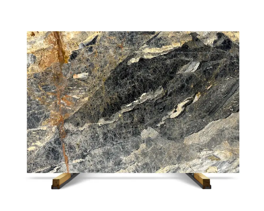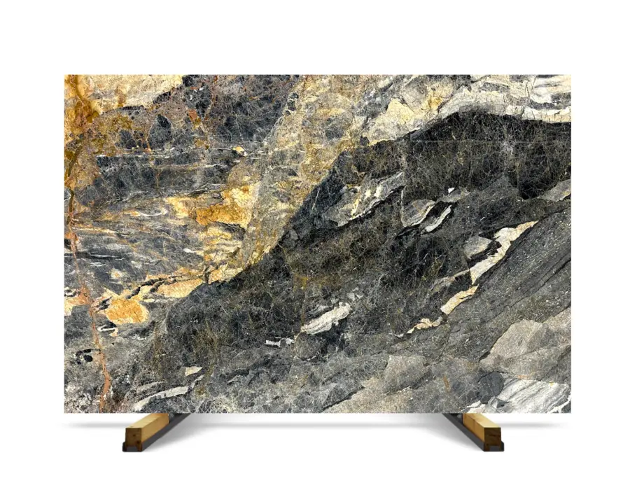 Vincent Black marble from Turkey is available for supply to the United States through container-based shipments and project-focused sourcing. This material is defined by its deep black and charcoal base combined with gold and white mineral veining, creating a high-contrast surface suited for statement applications.